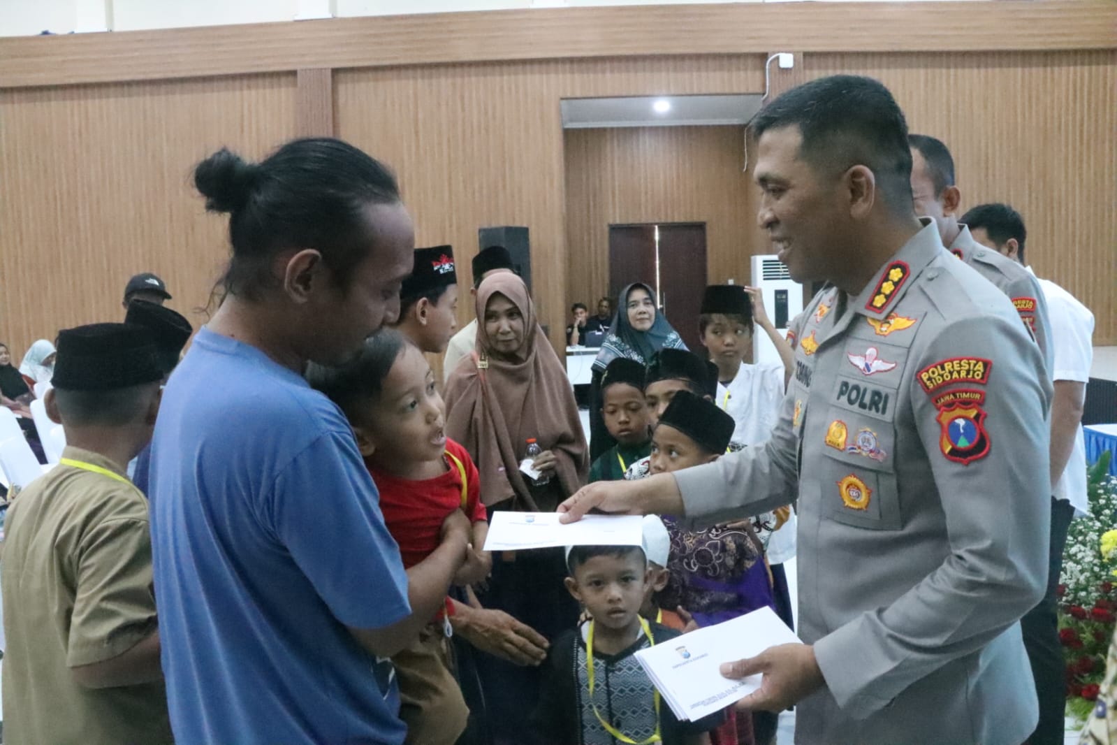 Mereka juga memperoleh bingkisan dari Polresta Sidoarjo Polda Jatim yang bekerjasama dengan Siantar Top.
