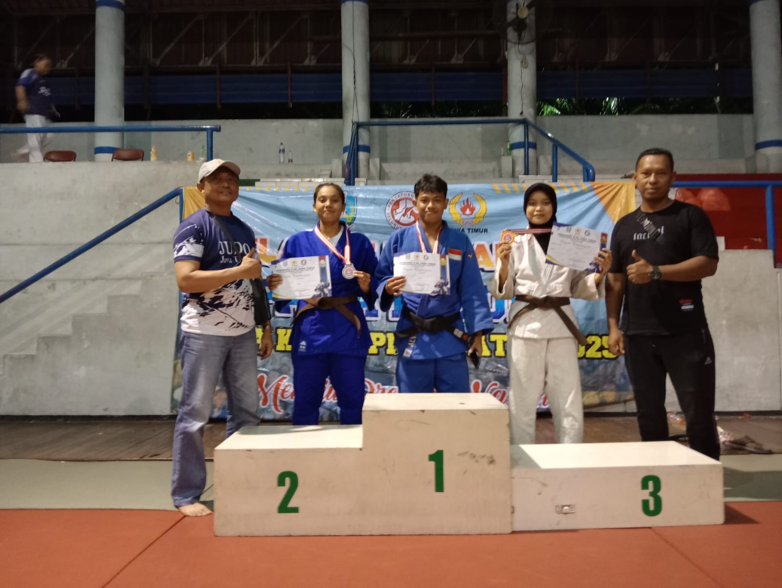 Mendapat 1 medali perak katogori dewasa putri 60 kg an. Siti Aisyah terakhir