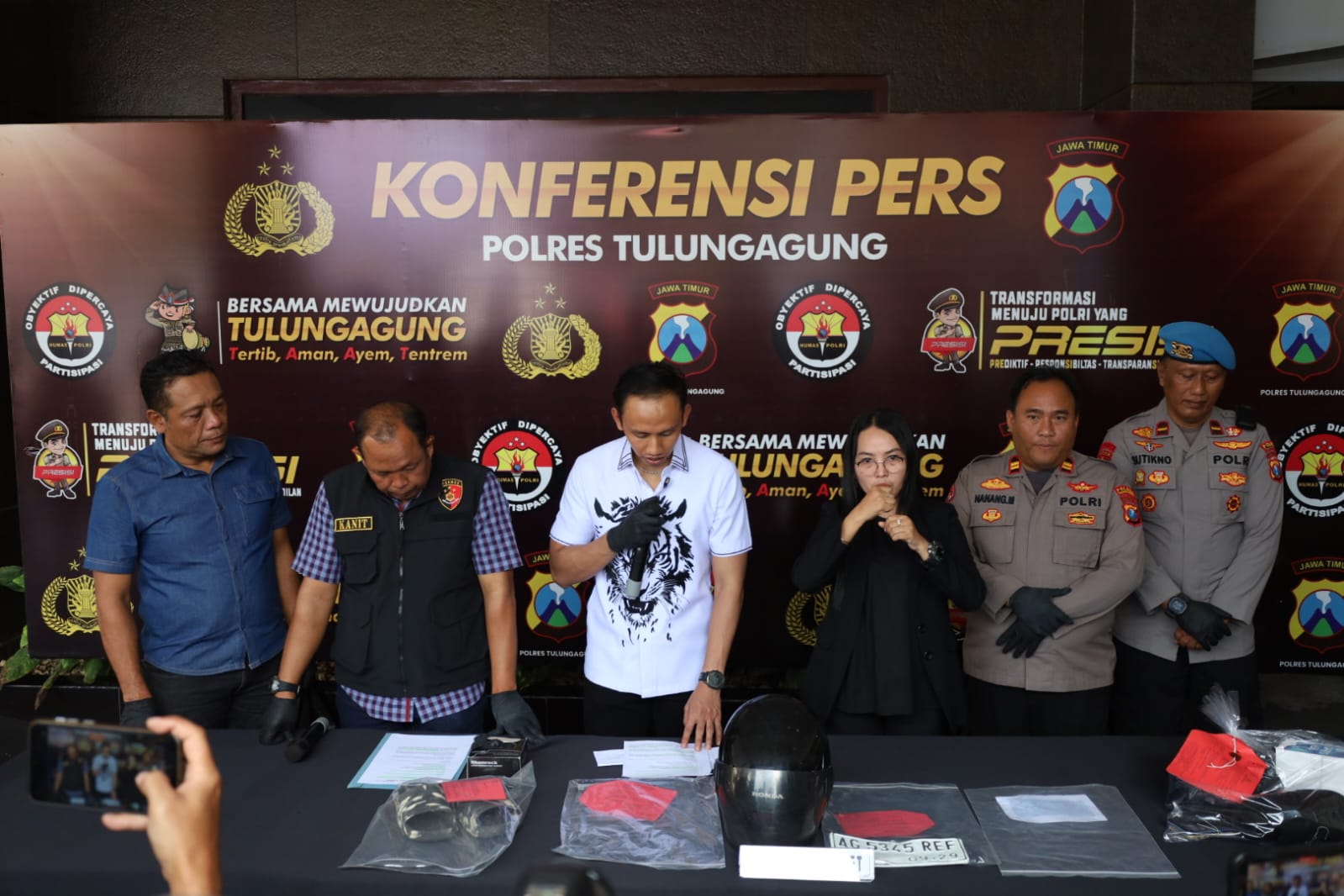 Pengungkapan kasus tersebut disampaikan dalam konferensi pers yang digelar di halaman Mapolres Tulungagung, Rabu (29/1/26).